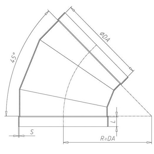 PP-EL-s Rohrbogen mit Muffen 45° R=DA, elektrisch leitfähig