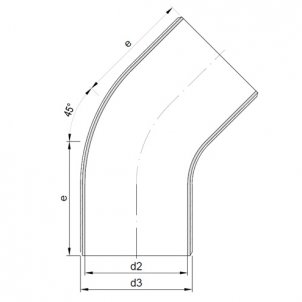 UP-GF-PP Bogen 45° DIN 16 966, Form E2, Rohrtyp B, Liner PP, mit Laminatende, PN 16