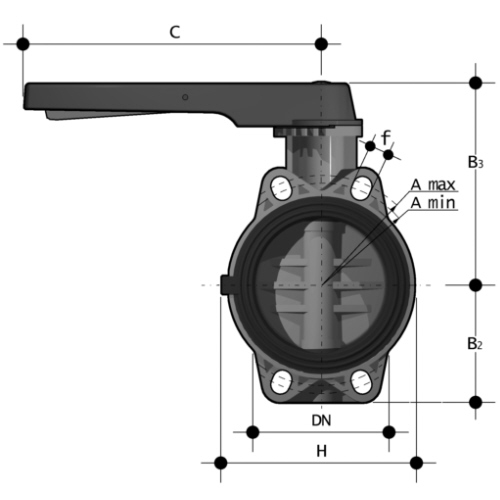 | - zentrisch gelagerte PP Klappenscheibe - Klappenkörper aus PP-GFK - Dichtung: FPM - Führungswelle: Edelstahl - Handhebel rastbar, feststellbar und abschließbar - Auf Anfrage: Endlagenrückmelder, NBR Dichtung - Z = Zwischenbaumaß - kundenspezifisch kennzeichenbar |