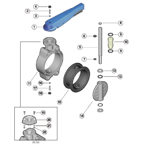 PP Absperrklappe FK, Handhebel, FPM