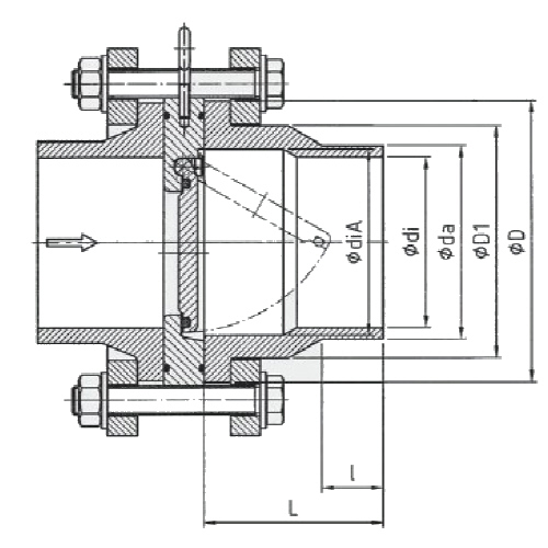 - Rückschlagklappe ohne Rückstellfeder nicht für pulsierende Strömungsverhältnisse empfohlen (Geräuschbildung)