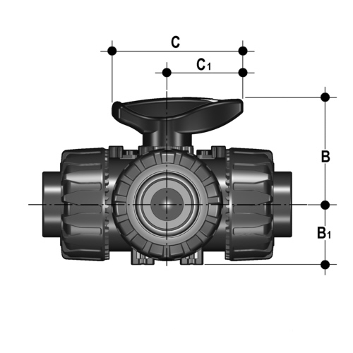 PVC-U 3-Wege-Kugelhahn, T-Bohrung, Klebemuffen, EPDM