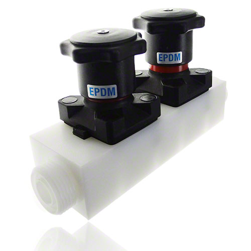 Mehrwegeventil aus PVDF mit zwei Handantrieben, Membrane FPM